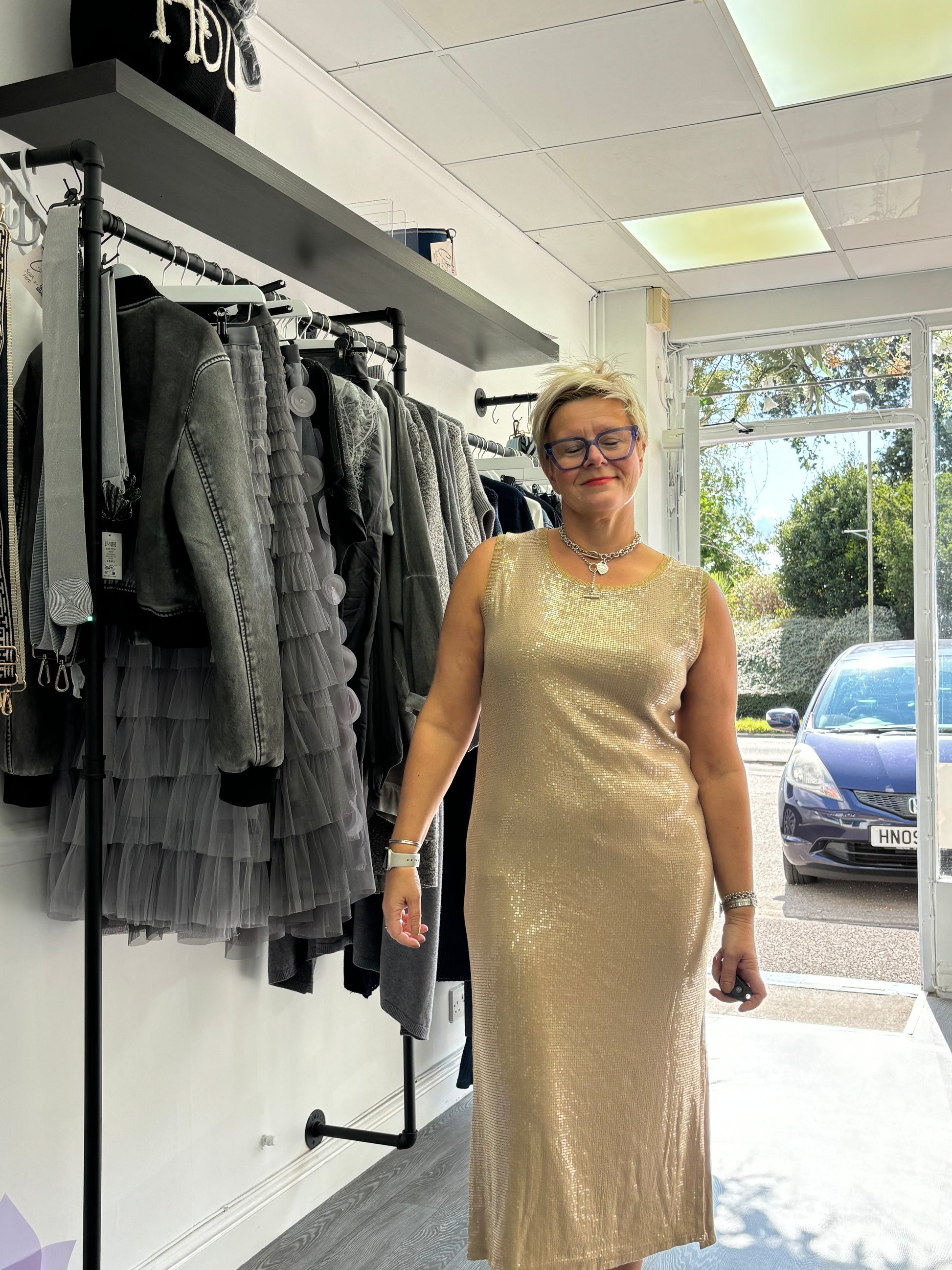 Gold Sleeveless Sequin Dress