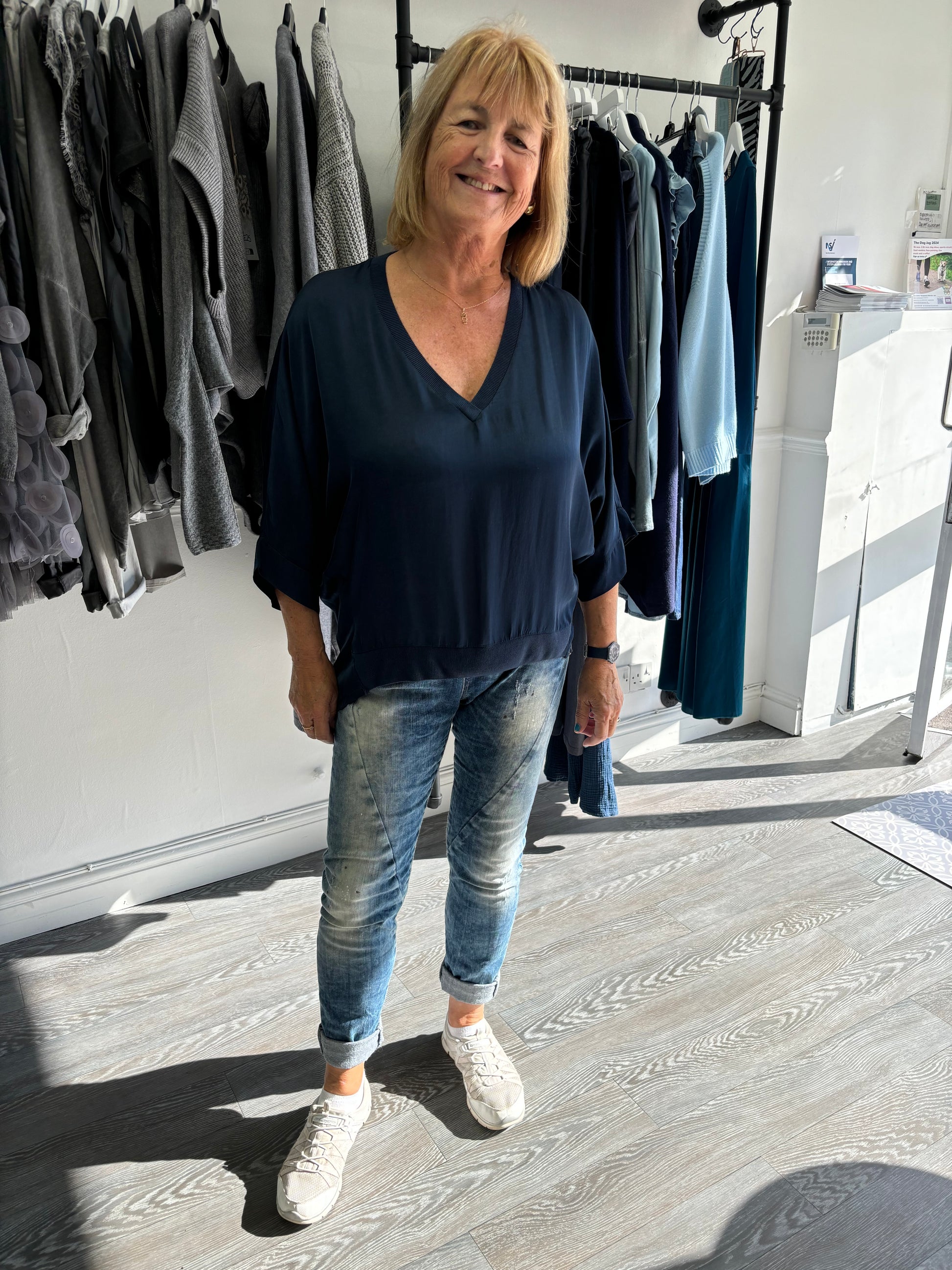 Navy Satin Bat Wing